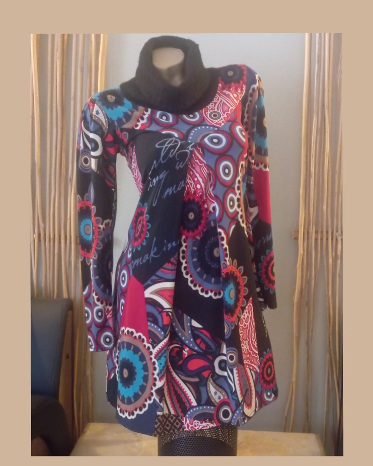 Renkli desenleri, uzun kollu ve yüksek yakasıyla bol kesim bohem kışlık elbise Amelie & Amelie Marka Renkli desenli Triko Boğazlı 36 Beden ve 34 beden için uygundur . Made in italy etiketli yeni https://www.thefashionstore.be/nl/amelie-and-amelie/# günlük kullanıma uygun.