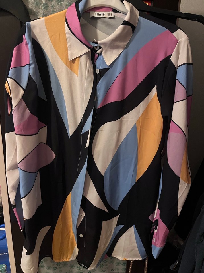 Kadınlar için uzun kollu, düğmeli, yakalı ve bol kesim gömlek. Pastel çok renkli desenlere sahip, yumuşak sentetik kumaştan üretilmiştir. Rahat sokak stili için uygundur.