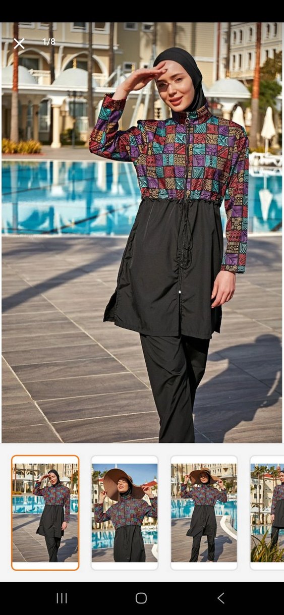 Renkli Desenli Uzun Kollu Kadın Mayo tam kapali tesettür mayo