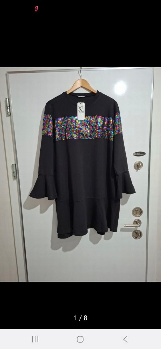 Uzun kollu, volanlı ve yuvarlak yakalı salaş tunik. Renkli desenli şerit göğüs kısmında yer alır. Sokak stiline uygun, yumuşak sentetik kumaştan yapılmıştır. ince swetshort kumaşı bahar ve kış mevsimine uygun