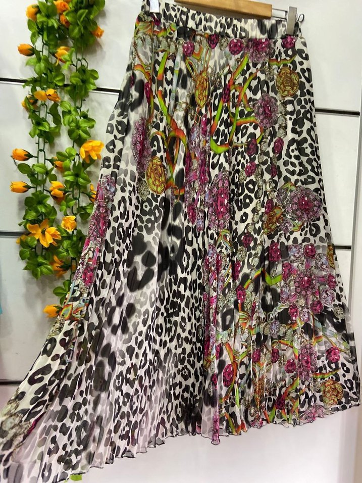 Renkli Desenli Uzun Piliseli Kadın Etek