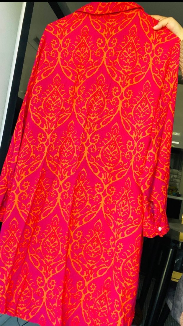 Renkli desenli, uzun kollu, straplez yakalı, bol kesim, ipeksi kumaştan bohem tarzda tunik. Günlük kullanım için uygundur.