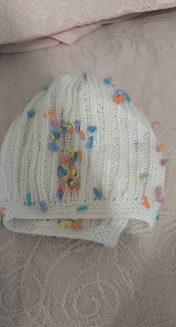 Renkli Detaylı Beyaz Örgü cocuk Bere