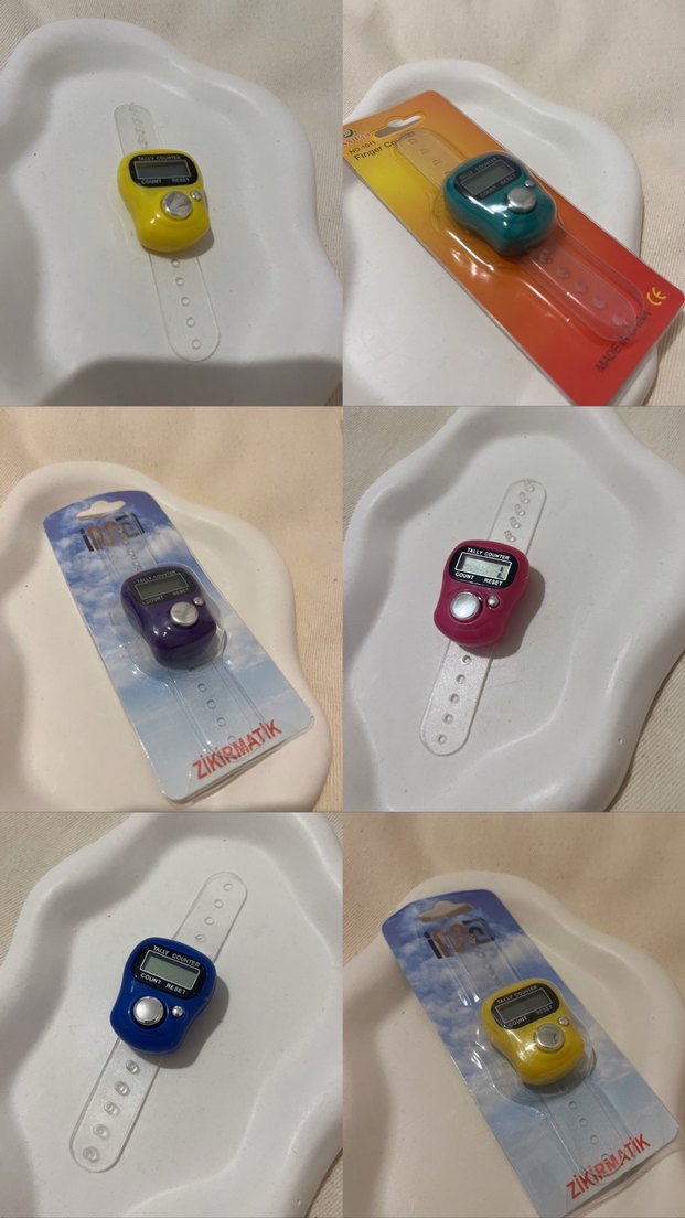 Renkli dijital ekranlı, kolay sayım için kompakt akıllı bileklik tarzında parmak sayaçları. Her biri net ekran ve basit tuş arayüzüne sahiptir.