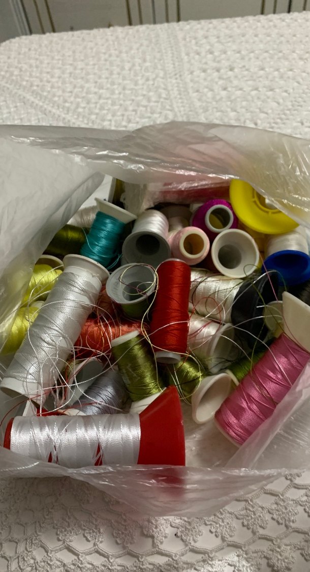 Farklı renklerde çeşitli dikiş iplikleri içeren bir set, el işleri için uygundur.