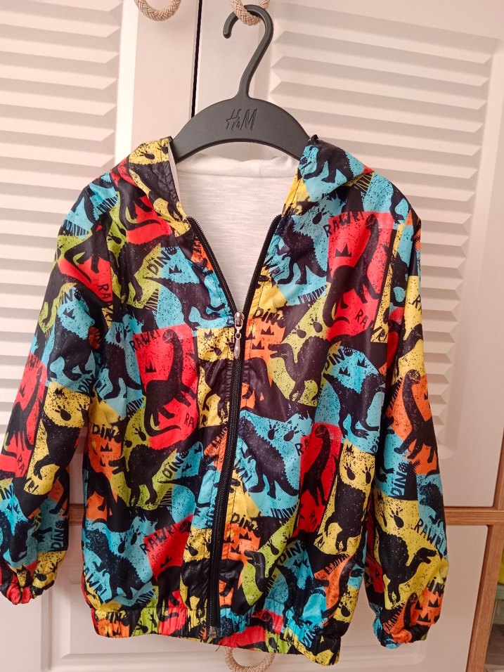 Renkli dinozor baskılı, kapüşonlu ve fermuarlı, bol kesim erkek yağmurluğu. Sentetik kumaştan, trend sokak stili için uygun. ️