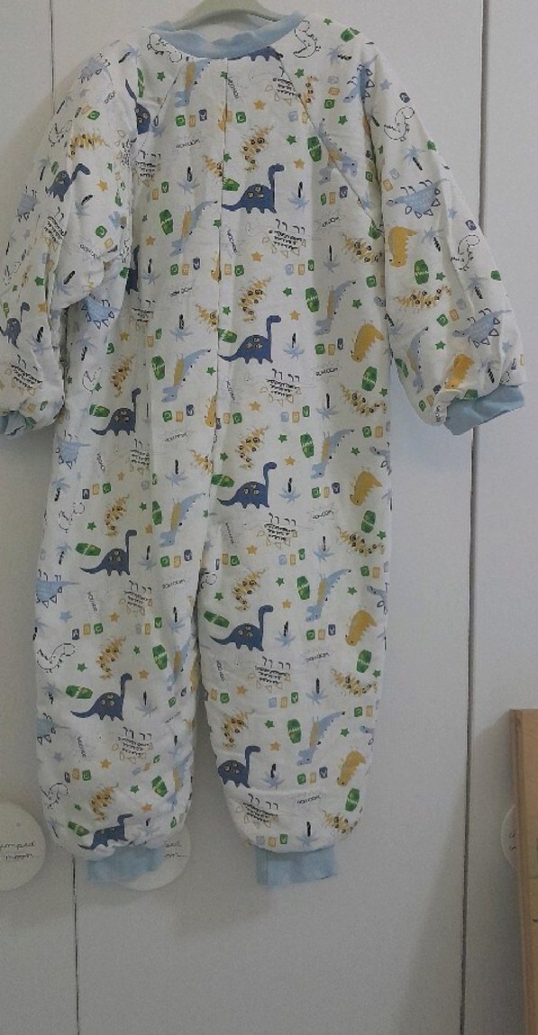 Kumaşı son derece sağlıklı, nefes alabilen ve yumuşacık bir kumaştır. Üşütmez ve terletmez. Yakadan ayak bileğine kadar fermuarlı olduğundan giydirip çıkartması çok kolaydır. ; 20-24 derece arası oda sıcaklığında içine pamuklu bir pijamayla giydirebilirsiniz. 24 derece ve üzeri derecelerde ise sadece zıbın veya atlet ile giydirebilirsiniz. Renkli dinozor desenli, uzun kollu, yüksek yakalı, bol kesim ve fermuarlı uyku tulumu