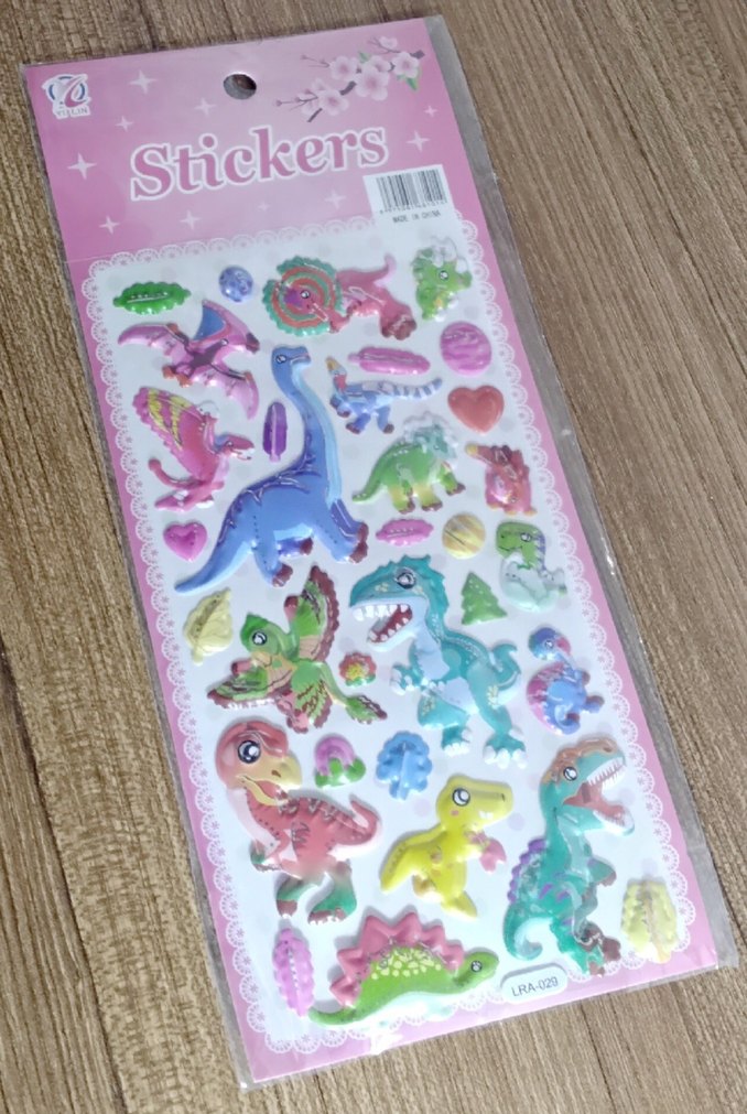 Çeşitli renk ve şekillerde dinozor temalı çıkartmalar.Çocuklar için eğlenceli bir süsleme ürünü.