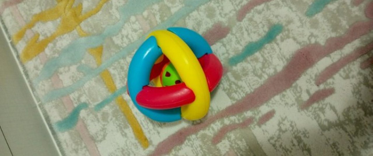 Sarı, mavi ve kırmızı halkalardan oluşan renkli diş kaşıyıcı ve çıngırak, bebeklerin tutup çiğnemesi için uygundur.