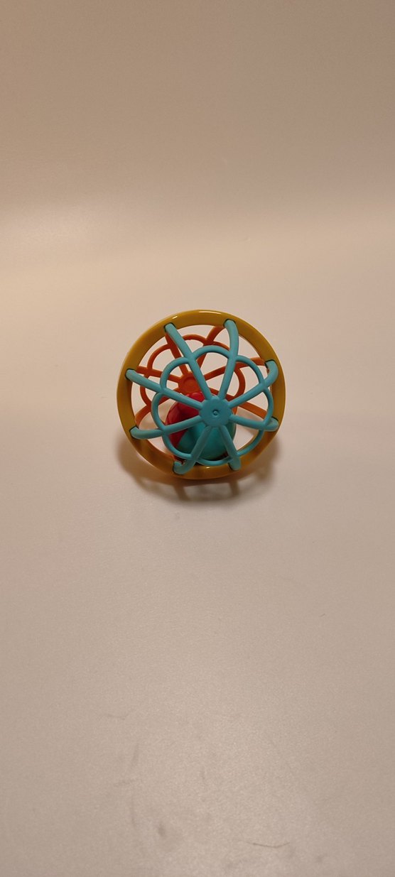 Bebeklerin duyusal gelişimi ve diş etlerini rahatlatmak için tasarlanmış, renkli halkalı diş kaşıyıcı ve çıngırak.