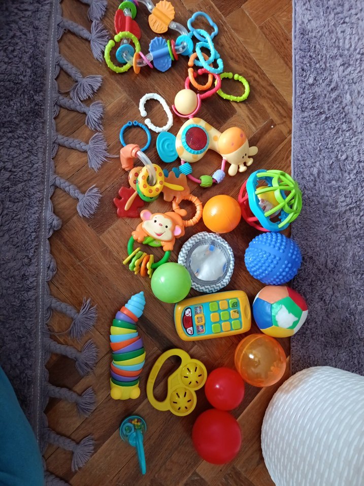 Çeşitli şekil ve dokularda renkli diş kaşıyıcılar ve çıngıraklardan oluşan set. hepsı sadece Turkuaz çıngırak yok onun yerine başka bişey gonderırım