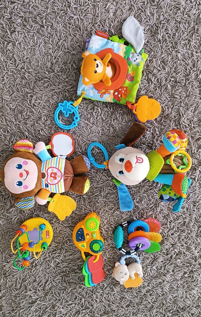 oyuncaklar temiz Yumuşak dokulu ve eğlenceli tasarımlı, bebekleri rahatlatan renkli diş kaşıyıcı ve çıngırak seti.