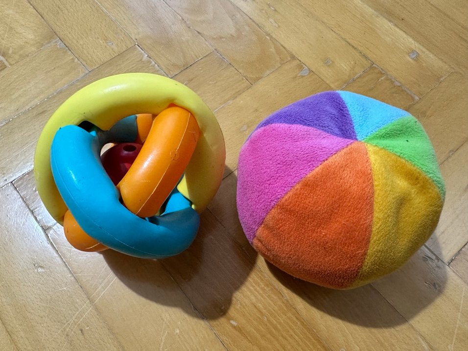 Canlı renklerde diş kaşıyıcı ve yumuşak kumaş top, bebeklerin ilgisini çeker. Küçük eller için kolay tutulur. Bebek Duyusal Oyuncak Seti – Yumuşak Renkli Top & Diş Kaşıyıcı Top Bebeklerin duyusal gelişimini destekleyen, renkli ve eğlenceli oyuncak seti. Yumuşak peluş top ve kavraması kolay, renkli diş kaşıyıcı top sayesinde bebeğin el-göz koordinasyonu, dokunsal algısı ve motor becerileri desteklenir. 1 adet yumuşak, renkli peluş top 1 adet diş kaşıyıcı & kavrama oyuncağı Hafif ve bebeğin rahatça tutabileceği tasarım Duyusal ve motor gelişimi destekler Kullanılmış, genel durumu iyi Fotoğraflar ürüne aittir #bebekoyuncağı #duyusaloyuncak #dişkaşıyıcı #bebektopu #annebebek #bebekürünleri #eğiticioyuncak #dolapsatış #ikincielbebek #bebekhediyesi