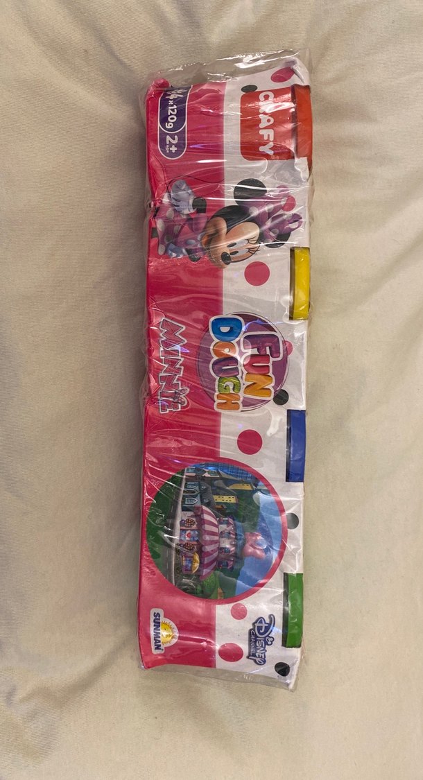 Yumuşak malzemeden yapılmış, çok renkli Disney Minnie baskılı çocuk oyun hamurları ve kalıpları. 2 yaş ve üzeri çocuklar için uygundur. Sıfır ürün olduğundan açıldıktan sonra geri alım yoktur bilerek alım yapalım