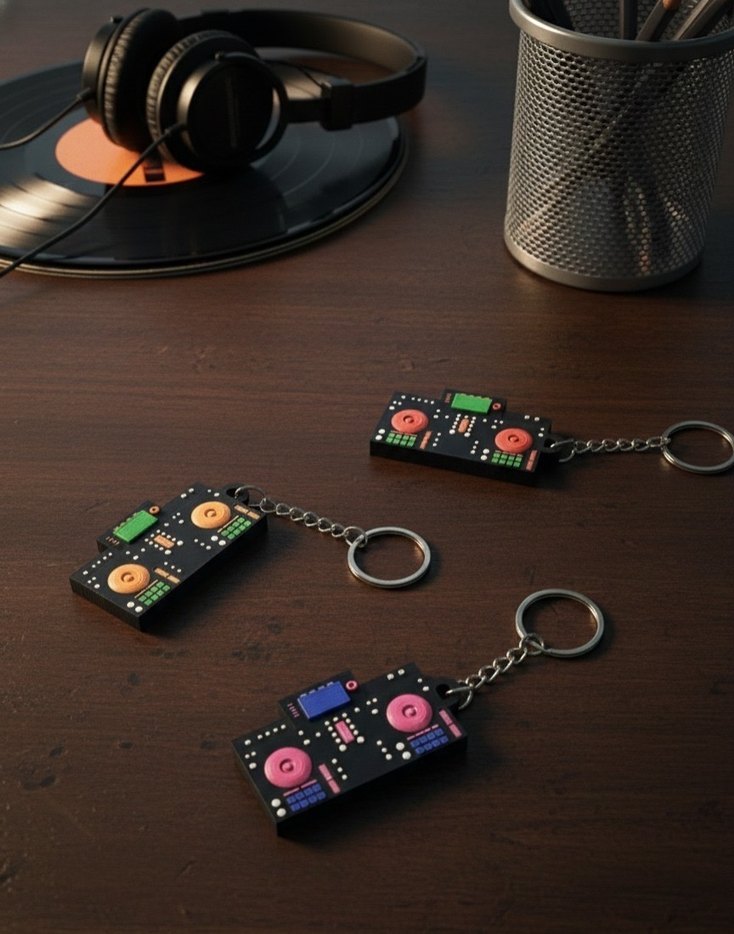 Renkli DJ Seti Mixer Retro Anahtarlık