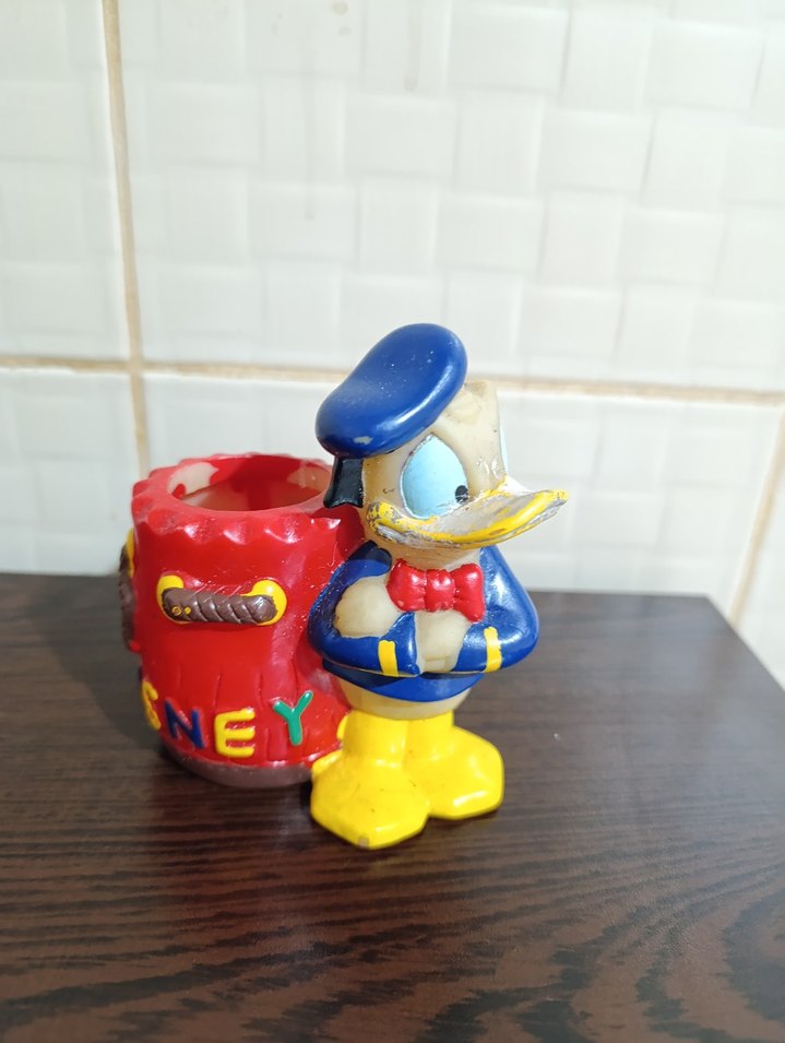 Mavi, sarı ve kırmızı renklerde Donald Duck figürlü, kalemlik ✏️