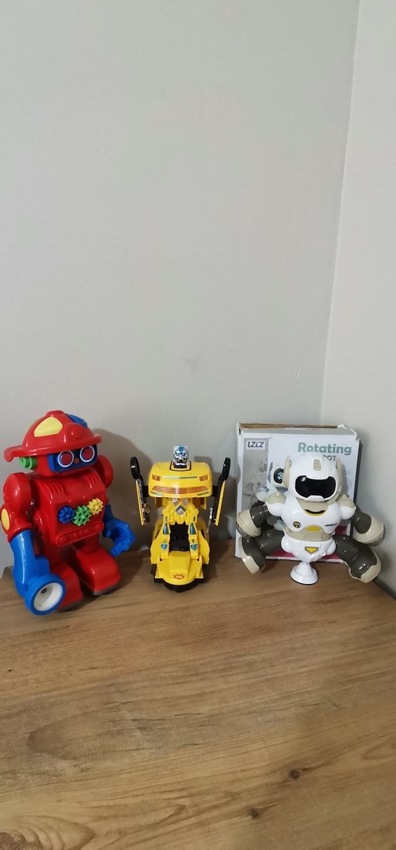 Canlı sarı ve diğer parlak renklerde dönen özellikli renkli oyuncak robot. Ürünler için tek tek fiyat alabilirsiniz. 3lü fiyatı 1300 tl Rotating robot kutulu sıfır ayarındadır 700 tl pazarlık olmaz Itfaıye robotu 600tl Robota dönüşen araba 500tldir.toplu alımda 1300tldir.tek alımda pazarlık yapmıyorum