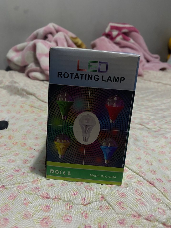 Çok renkli döner LED lamba, hareketli aydınlatma efekti sağlar. Renkli yanıyor. Disko topu gibi.