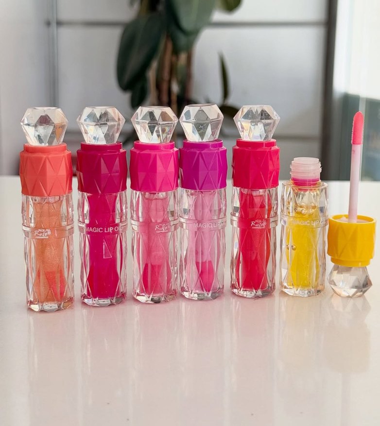 Kristal görünümlü kapaklı, çeşitli canlı tonlarda renkli dudak parlatıcıları. 1 adet fiyatıdır