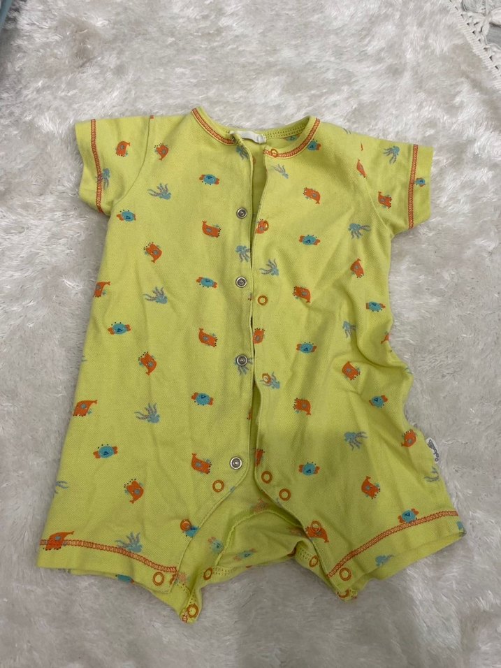 Renkli, kısa kollu, düğmeli bebek erkek tulumu. Yumuşak sentetik kumaştan üretilmiş, rahat ve kolay giyilebilir. Sokak stiline uygun desenli tulum. Sorunsuz temizdir 3-6 ay için uygundur