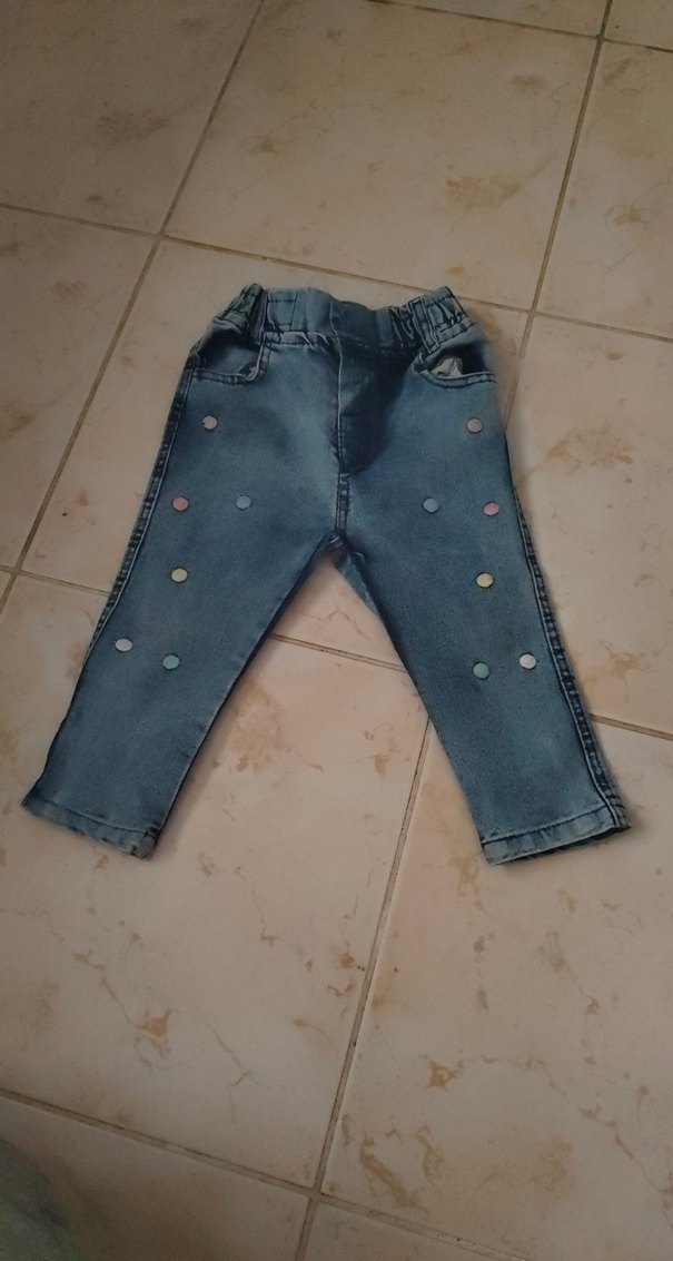 Düğmeli, renkli tie-dye desenli regular fit kız kot pantolon, trendy sokak stili için uygundur.