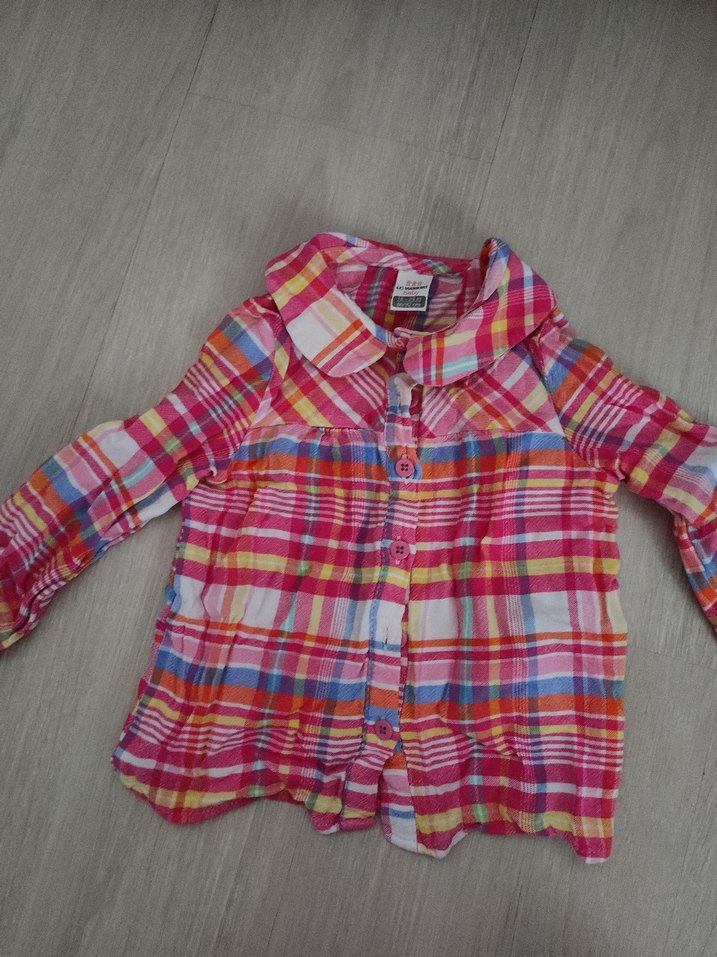 Renkli, düğmeli, uzun kollu ve yakalı kız gömleği. Gevşek kesimi ve tie-dye deseni ile bohem, retro tarzı sunar.