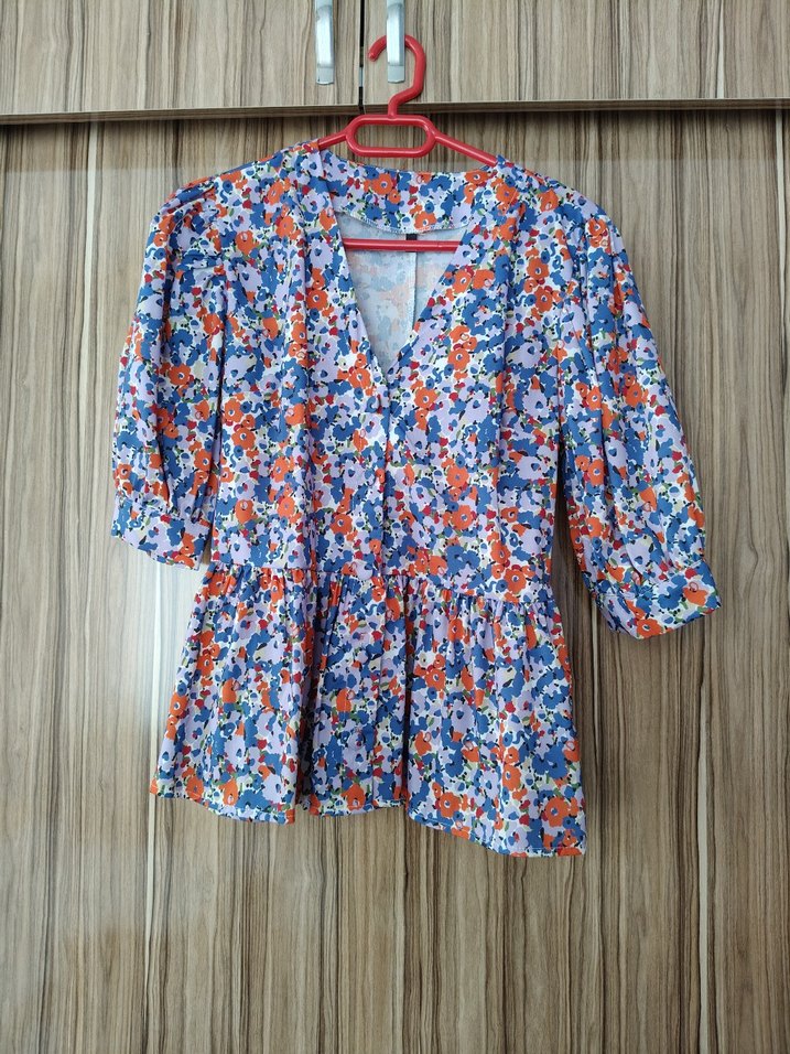 Renkli, Düğmeli, V Yaka Kadın Bluz