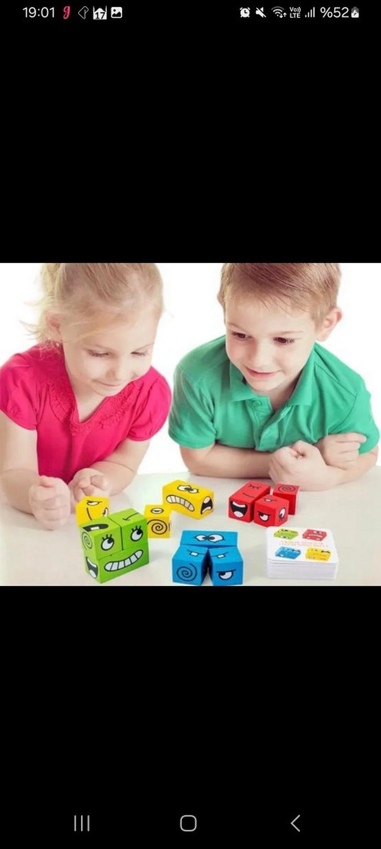 Renkli bloklar üzerinde farklı yüz ifadeleri bulunan, çocukların duyguları öğrenmelerine yardımcı olan eğitim oyunu.