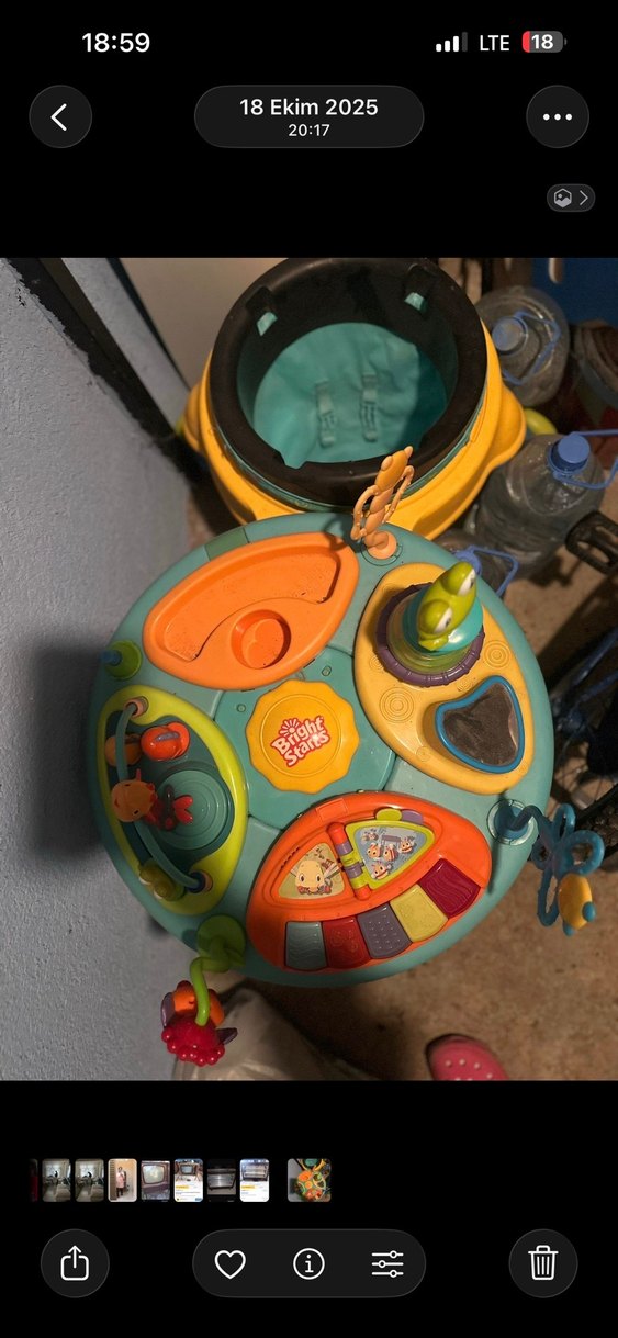 Çocukların öğrenme ve oyun için etkileşimli parçalarla donatılmış renkli eğitici aktivite masası.