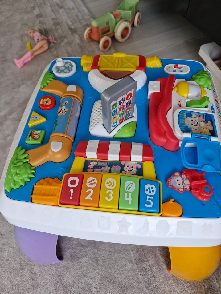 Çocuklar için interaktif düğmeler ve müzik özellikli renkli eğitici aktivite masası. kızım bununla ayakta durmaya heveslendi.2.seviye calısmıyor pil degisimi hic yapmadık ondan olabilir belki