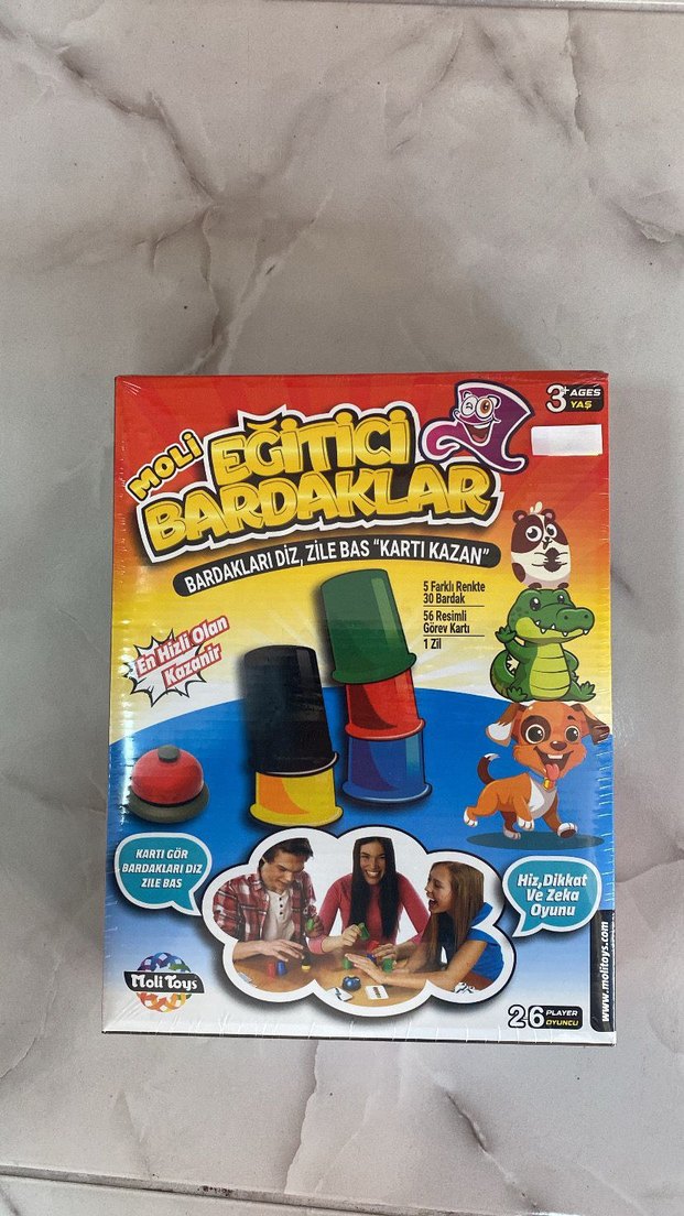 3 yaş ve üzeri çocuklar için 5 farklı renkte 30 bardak içeren renkli eğitici oyun. Dikkat ve zekayı geliştiren kart ve zille oynanır. 56 resimli görev kartı ve 1 zil.