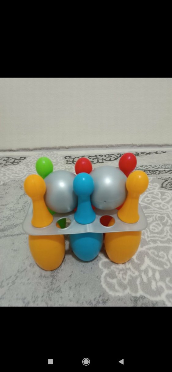 Çok renkli, çoklu pimi ve toplarıyla eğitici bowling oyuncağıdır.