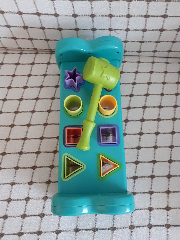 Renkli eğitici oyuncak, farklı şekilli delikler ve şekilleri eşleştirip vurmak için bir çekiç içerir, motor becerileri ve şekil tanımayı geliştirir. bir yıldız eksik