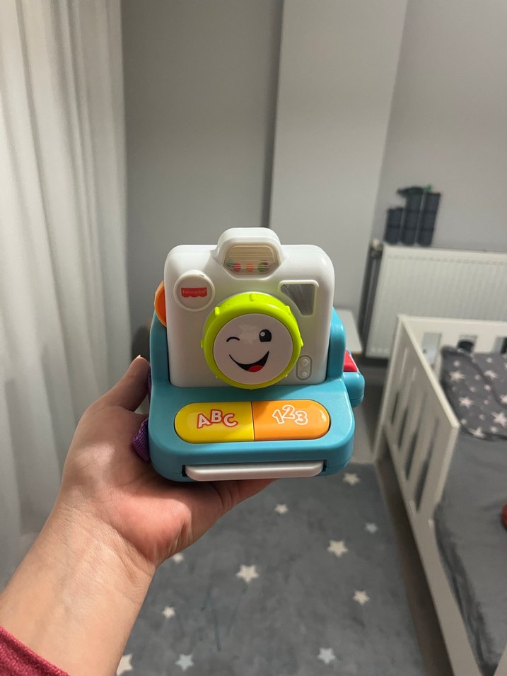 ABC ve 123 düğmeleriyle renkli eğitici fotoğraf makinesi oyuncak, harf ve sayı öğrenimini destekler. Canlı ve etkileşimli tasarım sunar.