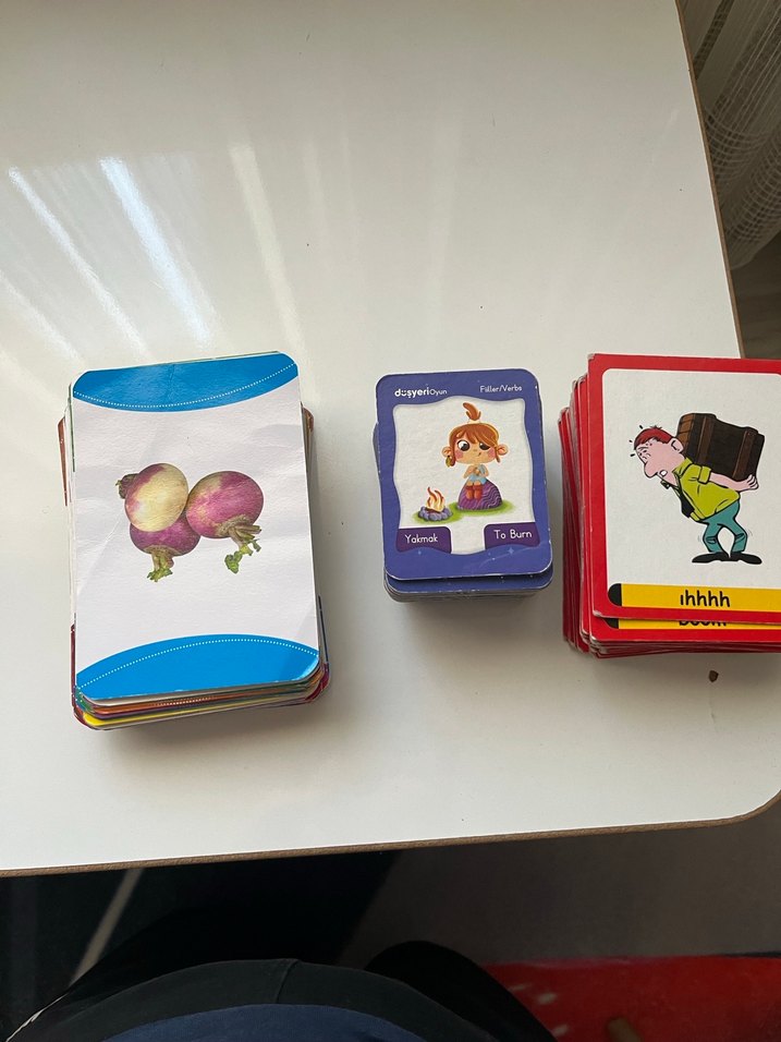 Çocukların kelime ve kavram öğrenmesini sağlayan renkli eğitici kartlar. Canlı görseller ve basit metinler içerir. Ses kartı 49 adet, değişik kelime kartları 80 adet, eylem kartları 40 adettir. Ufak deformasyonlar vardır ama çocuklarınızda konuşma gecikmesi varsa almanızı öneririm. Ben çocuğumda çok faydasını gördüm.