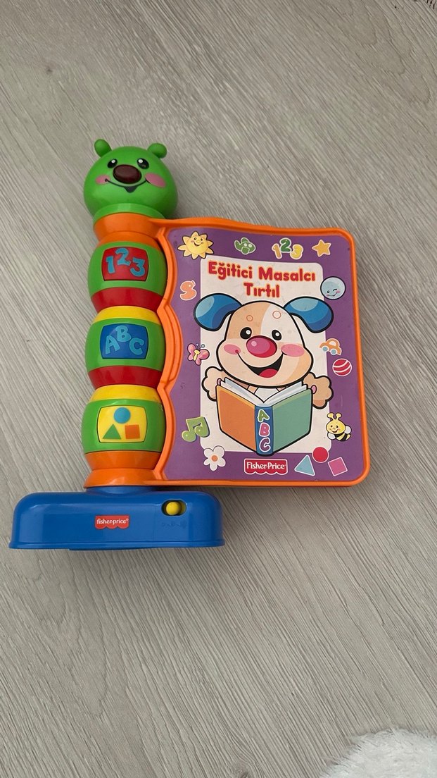 Renkli eğitici tırtıl oyuncak, sayılar, harfler ve şekiller için interaktif düğmelere sahip. 'Eğitici Masalcı Tırtıl' kitapçığı içerir.