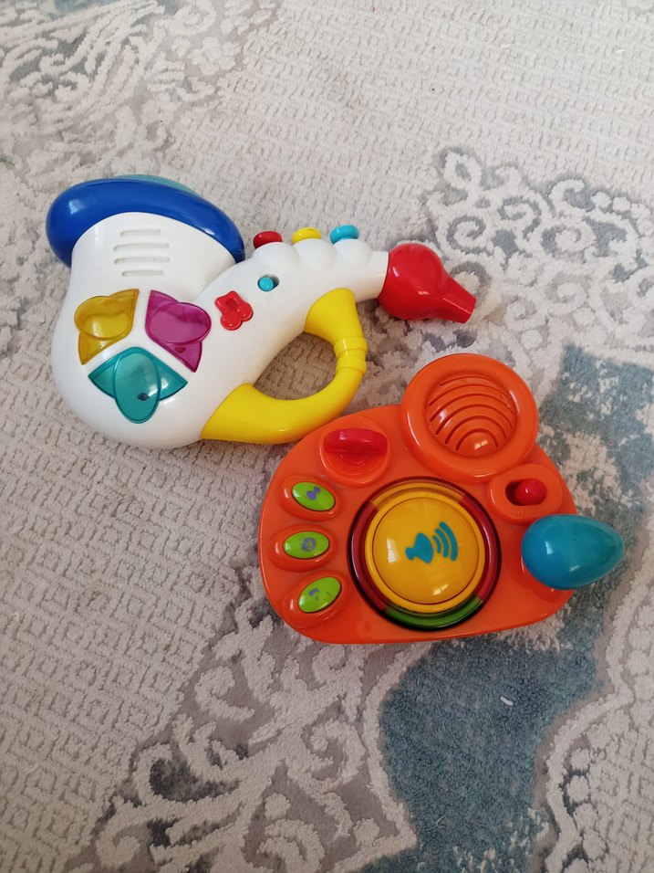 Çocuklar için düğmeli ve etkileşimli özelliklere sahip renkli eğitici müzik oyuncakları.