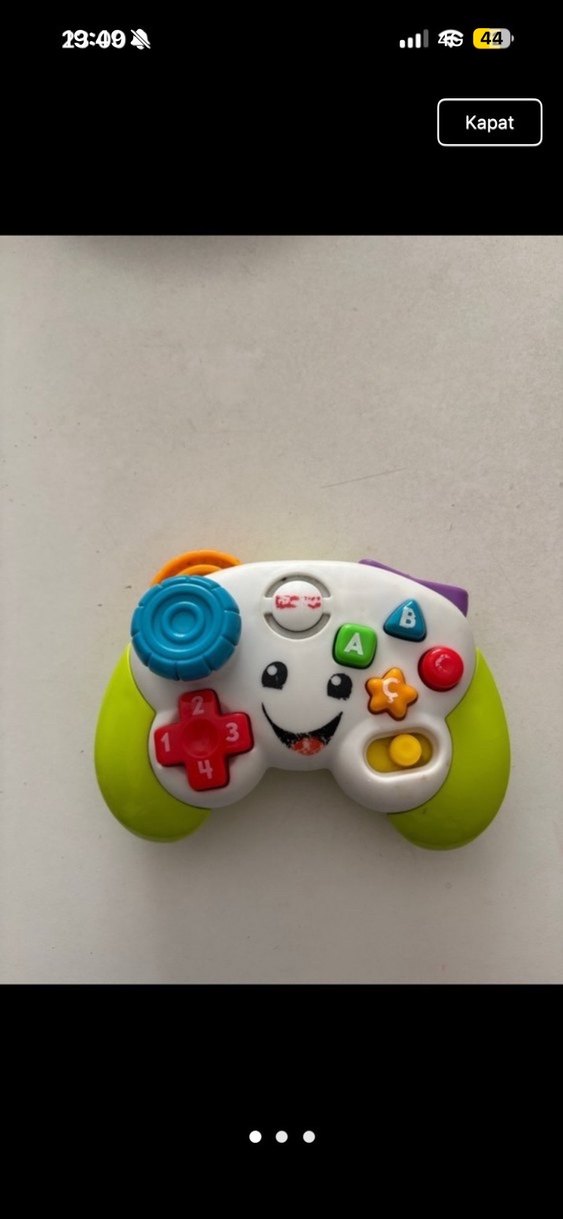 Renkli, oyun konsolu şeklinde eğitici oyuncak. Harf ve rakam içeren düğmelerle çocukların öğrenmesini destekler.