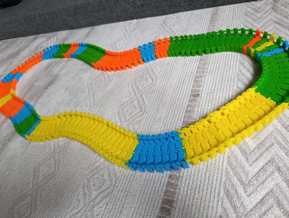 Birbirine geçen parçalarla yapılmış, bükülebilen renkli eğitici oyun yolu . Yaratıcılığı ve ince motor becerilerini destekler.