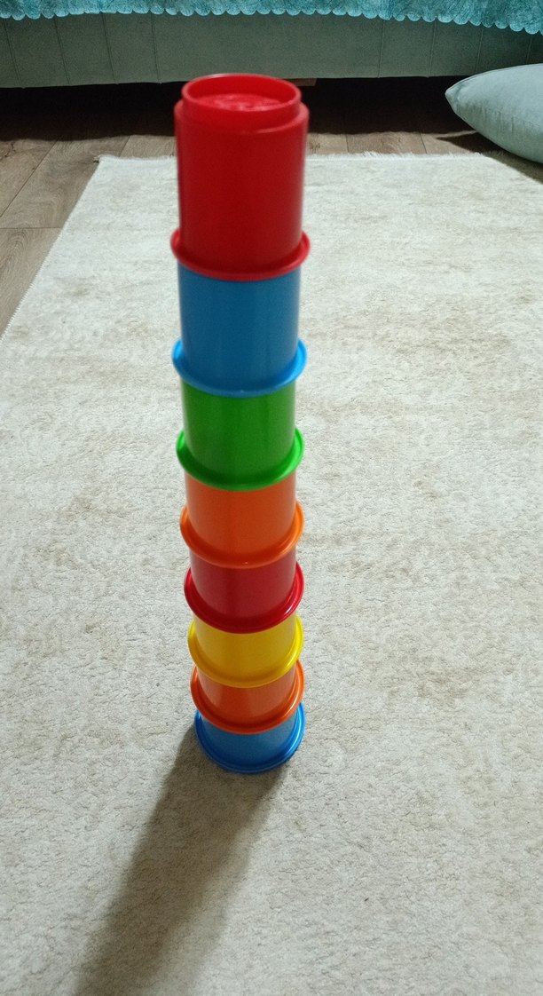Motor becerileri ve yaratıcılığı geliştiren çok renkli eğitici oyuncak bardaklar. Dayanıklı plastikten yapılmıştır.