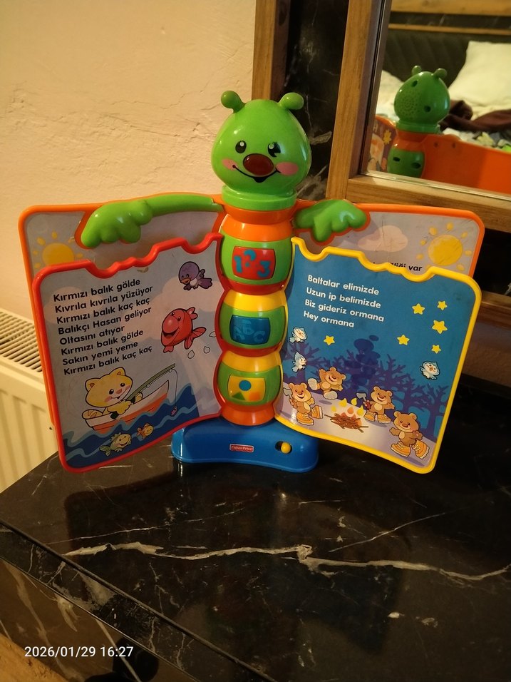 Canlı renklerde, düğmeli tırtıl şeklinde eğitici oyuncak. İki kitap sayfası şiir ve çizimlerle dolu. 2026/01/29 16:27 tarih damgası içerir.muzik çalmiyor artık yalnızca okunur