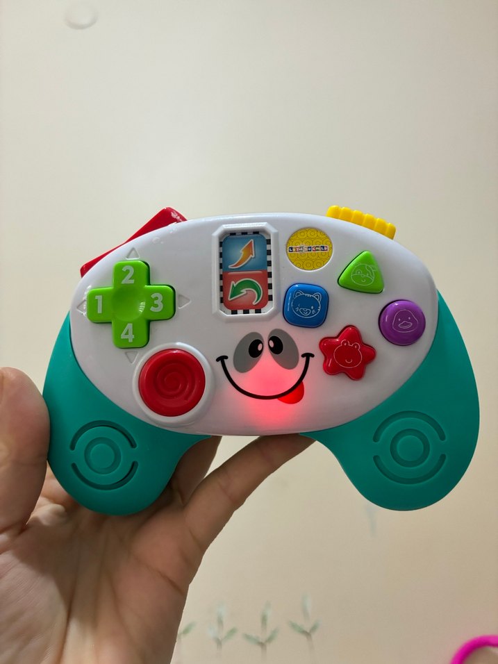 Renkli ve çok fonksiyonlu bu eğitici oyuncak kumanda, sayılar, şekiller ve ışıklı yüz ifadesi ile çocukların ilgisini çeker.