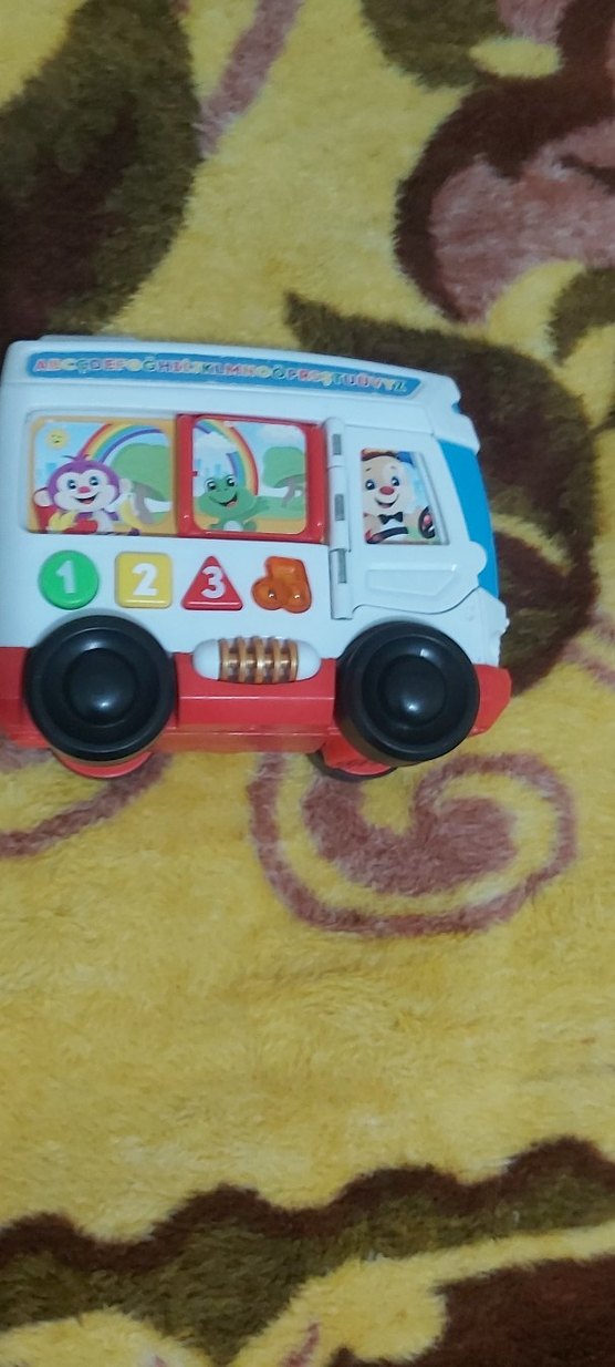Rakamlar ve hayvan figürleri içeren renkli eğitici oyuncak otobüs, çocukların şekil ve sayıları öğrenmesine yardımcı olur.