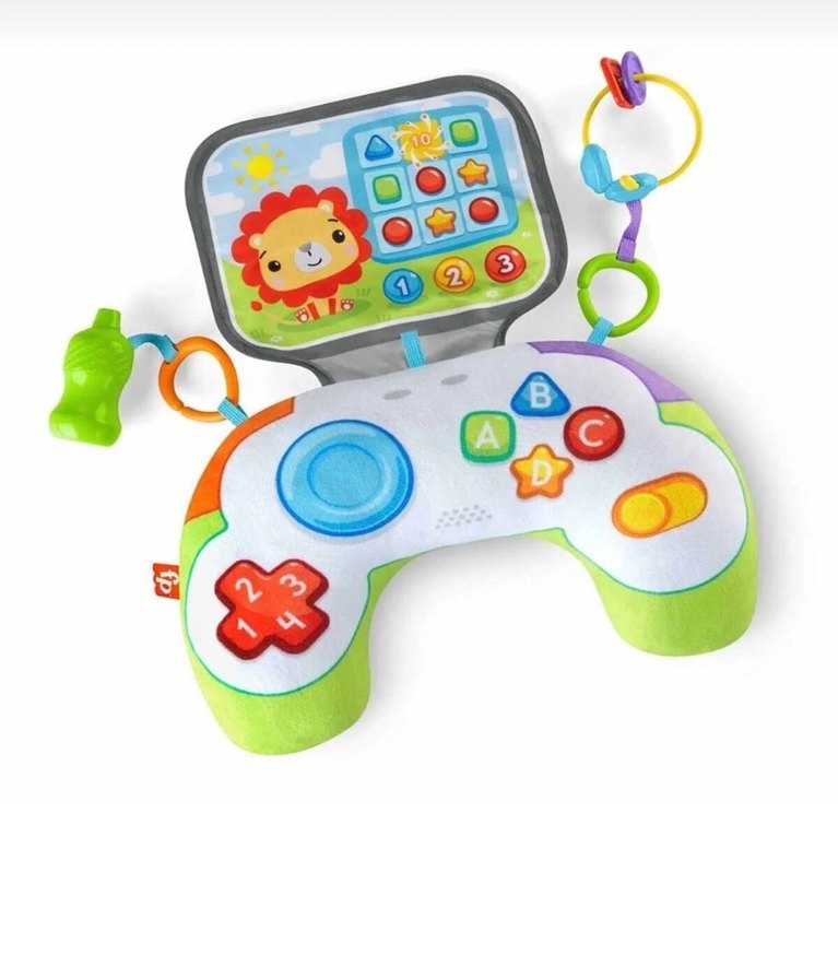 Renkli oyun kumandası şeklinde eğitici oyuncak, 1, 2, 3 ve A, B, C, D düğmeleri bulunur. Şekiller ve sayılar içeren interaktif ekran ve dokunsal oyun için halkalar içerir.