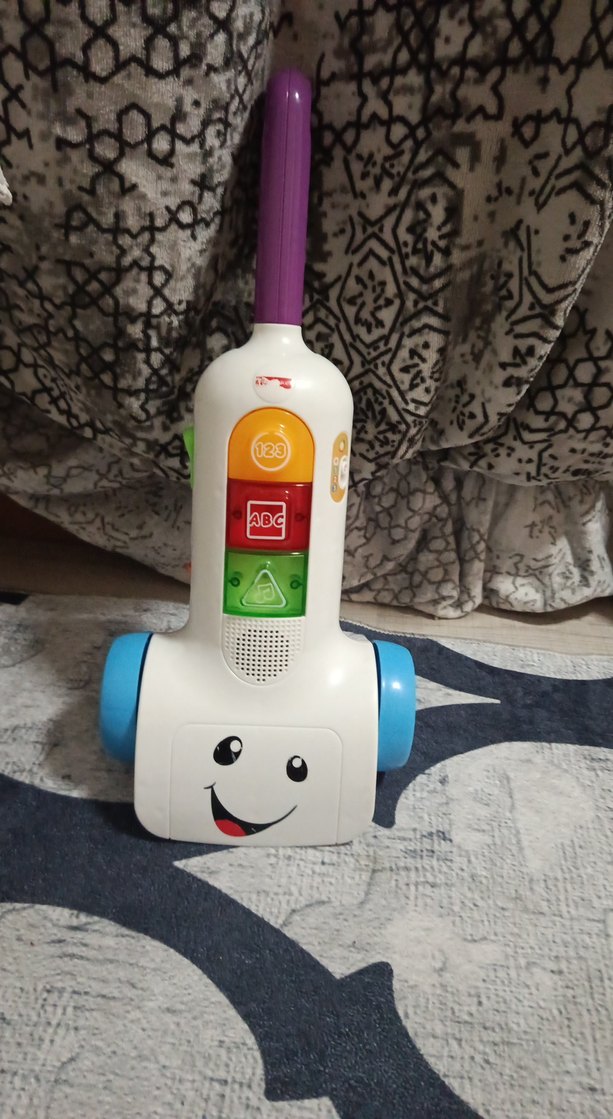 Renkli eğitici oyuncak süpürge, ABC ve 123 butonları ile çocukların öğrenmesini destekler. Canlı renkler ve güler yüzlü tasarımı vardır.