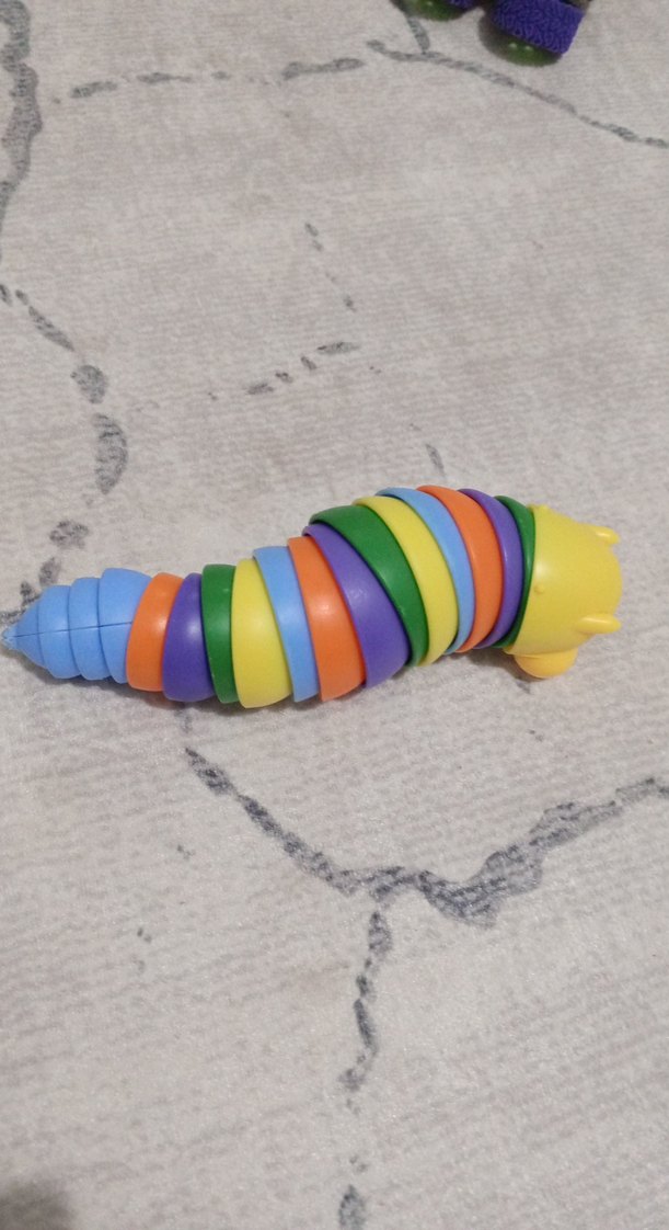 Renkli, bölümlere ayrılmış tırtıl oyuncak, öğrenme ve motor becerilerini geliştirmek için tasarlanmıştır. Pürüzsüz ve güvenli malzemeden yapılmıştır.