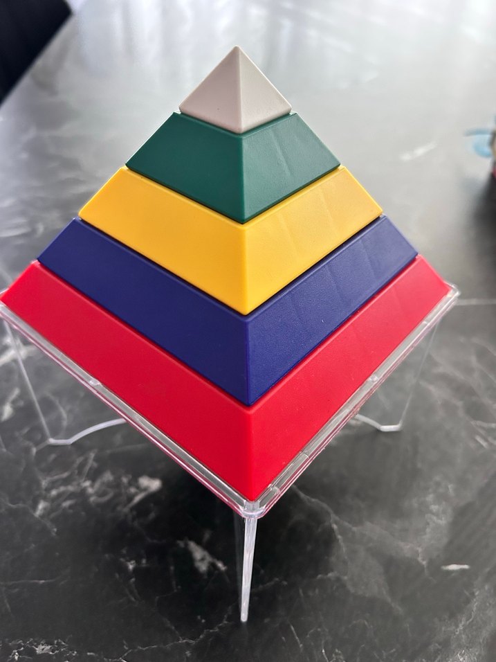 Farklı boyut ve renklerde üst üste konabilen renkli eğitici piramit oyuncak, mekânsal ve bilişsel becerileri geliştirir.