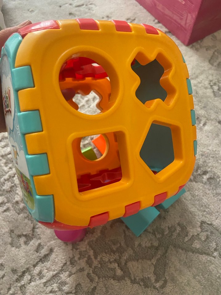 Çocukların şekil ve renkleri öğrenmesine yardımcı olan çeşitli şekil eşleştirme delikleri bulunan renkli eğitici oyuncak. Boyutu ideal güzel hiç bir sorunu yok kaliteli