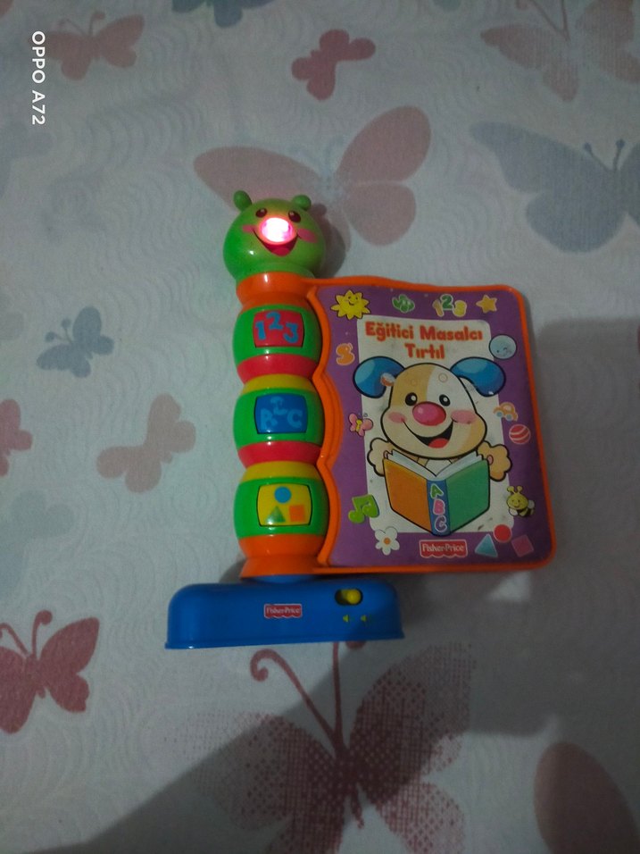 Renkli eğitici tırtıl oyuncak, etkileşimli düğmeler ve küçük kitap ile çocukların öğrenmesini sağlar. Işık ve ses efektleri içerir. pil kapağı kayıp maalesef