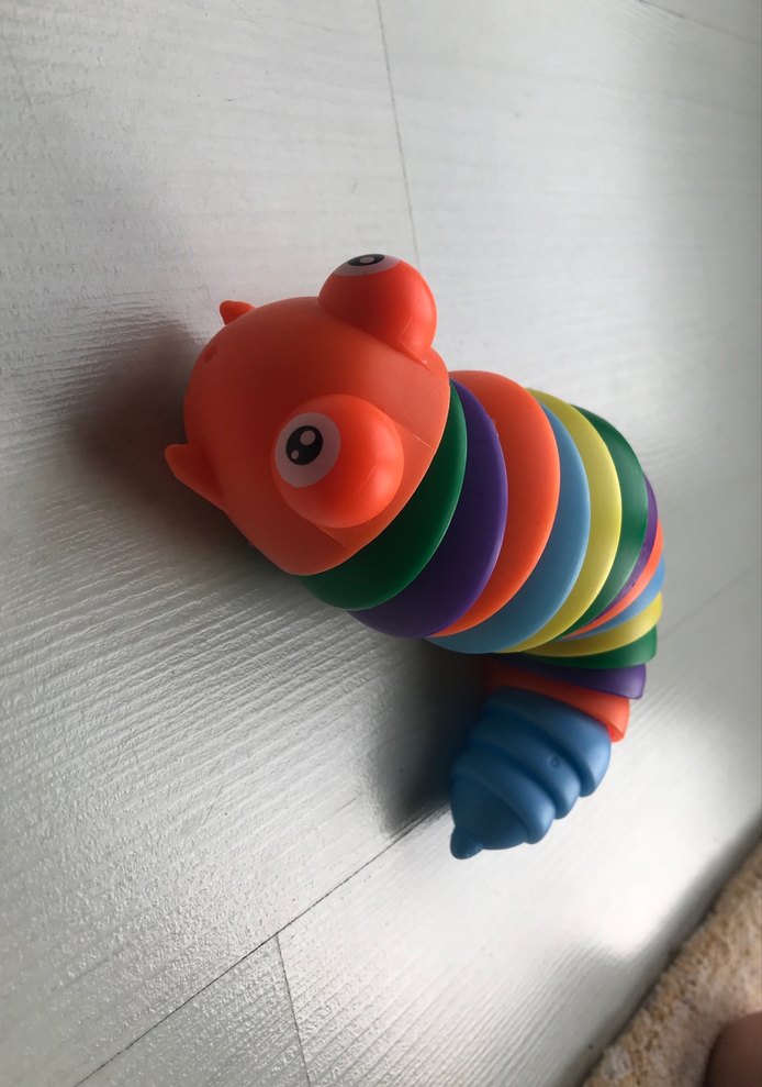 Çok renkli, tırtıl şeklinde eğitici oyuncak, çocukların ilgisini çekmek ve öğrenmelerini desteklemek için çok renkli parçalara sahiptir.